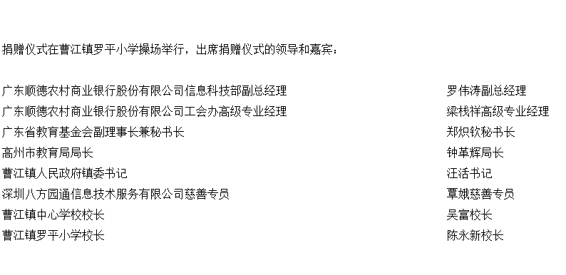 2021年,廣東順德農村商業銀行股份有限公司向廣東省教育基金會捐贈一批綠色愛心電腦,經深圳八方園通信息技術服務有限公司專業技術人員組裝成392套標準電腦。今年4月已向肇慶市廣寧縣、清遠市連南縣9所小學捐贈208臺綠色愛心電腦。此次再向茂名高州市曹江鎮2所學校捐贈82臺綠色愛心電腦,其中羅平小學41臺、中心學校帥堂校區41臺,為鄉村教育事業做出巨大貢獻。